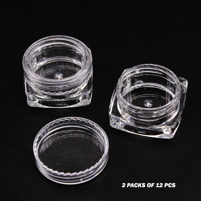 These jars are designed for sampling eyeshadows, creams, lip balms, lotions, and other cosmetic products.