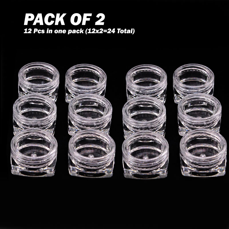 Two packs of 12 small round storage plastic bottles are available for various purposes, such as organizing jewelry, beads, cosmetics, and accessories.