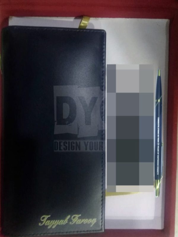Name And Long Wallet And Pen With Gift Box – In Black Color