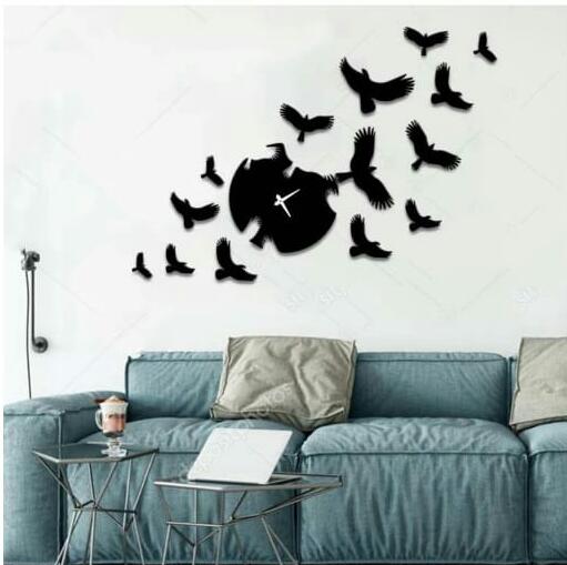 The flying bird’s wall clock is made with 3mm gloss acrylic (Black Colour), birds are separately apart from each other, they can hang on the wall with clips attached to the clock and double-sided to the adhesive on the back to get stick to the wall.