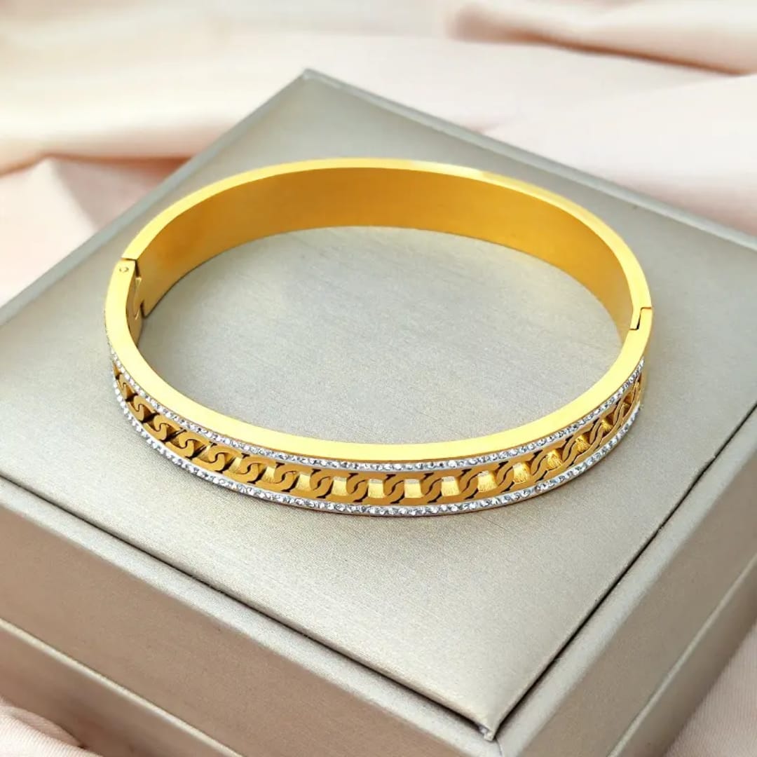 Plain Chain Rhinestones Cuff In Stainless Steel Premium Quality Tarnish Free ✨✨✨✨