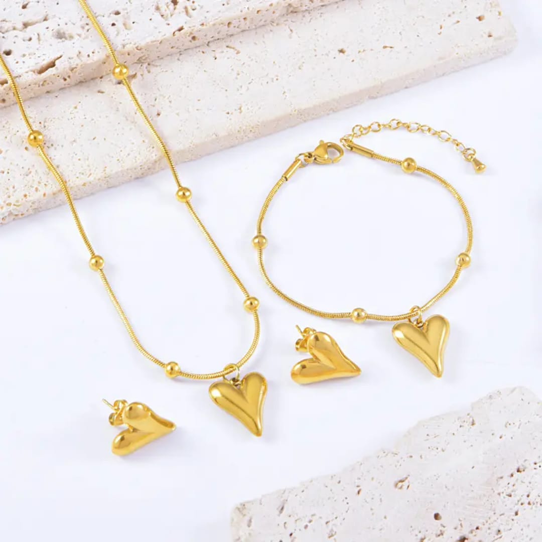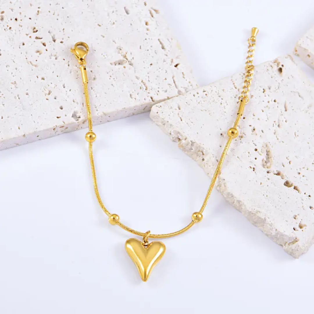 Ramos Temperament Heart Pendant Chain Necklace, Bracelet, Anklet and Studs for Women Stainless Steel Stylish Choker Necklace