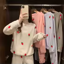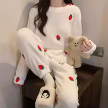 Be the first to review “Thickened Warm Sleepwear Winter Coral Velvet Strawberry School Home Wear Two-Piece Women Long-Sleeved Pajamas Solid Nightwear”