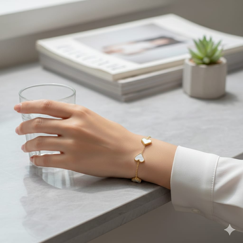 Stainless Steel 5 Heart White Shell Bracelet In Premium Quality Tarnish Free ✨✨✨